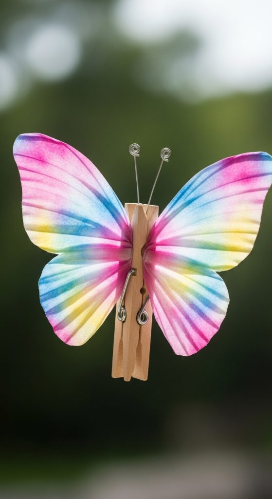 • Pro Tip: Draw a small face and two antennae on the top of the clothespin to give the butterfly more personality.