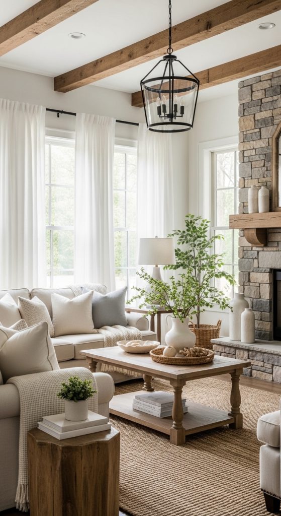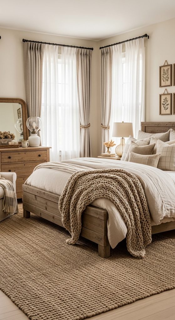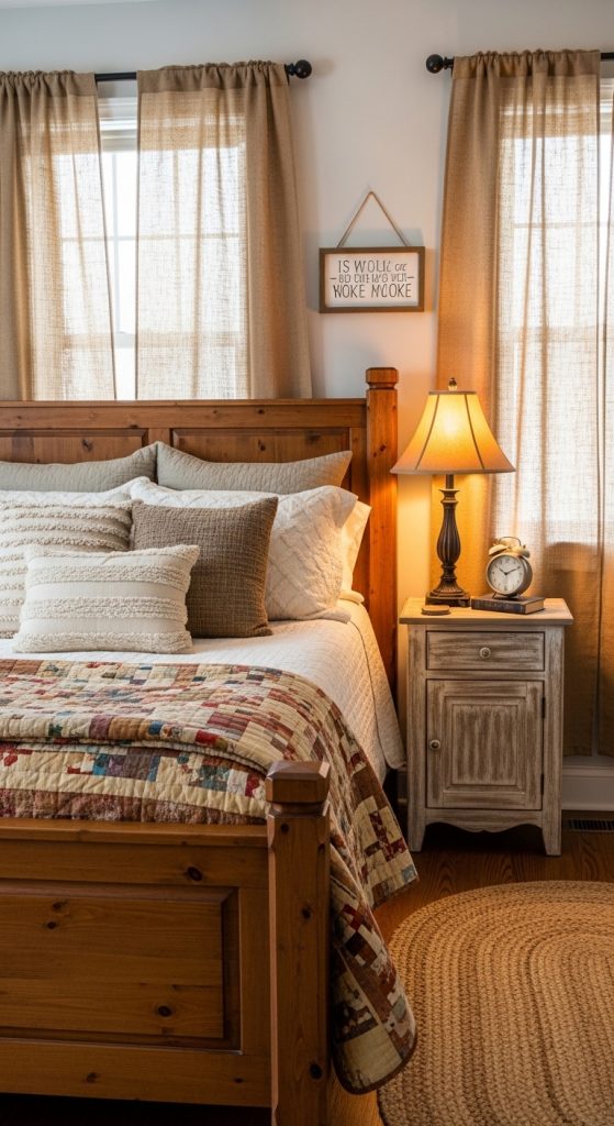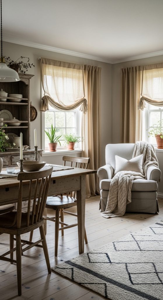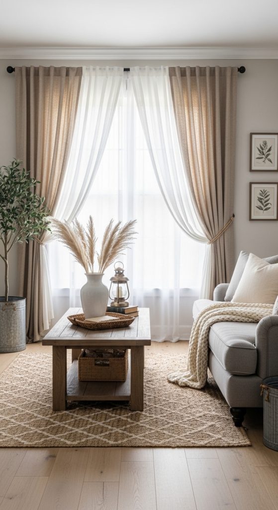 Layering is a key element in farmhouse decor. Combine sheer curtains with heavier drapes or Roman shades to create dimension and flexibility. This allows you to adjust light and privacy while adding visual interest to your windows.