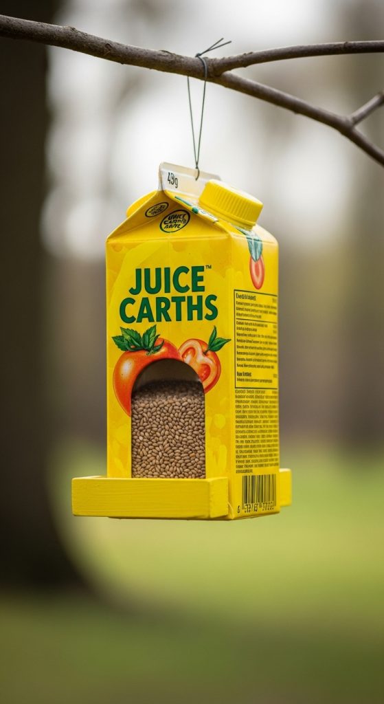 4. Recycled Juice Carton Bird Feeder