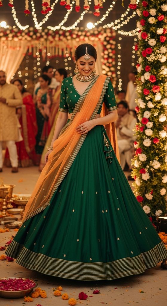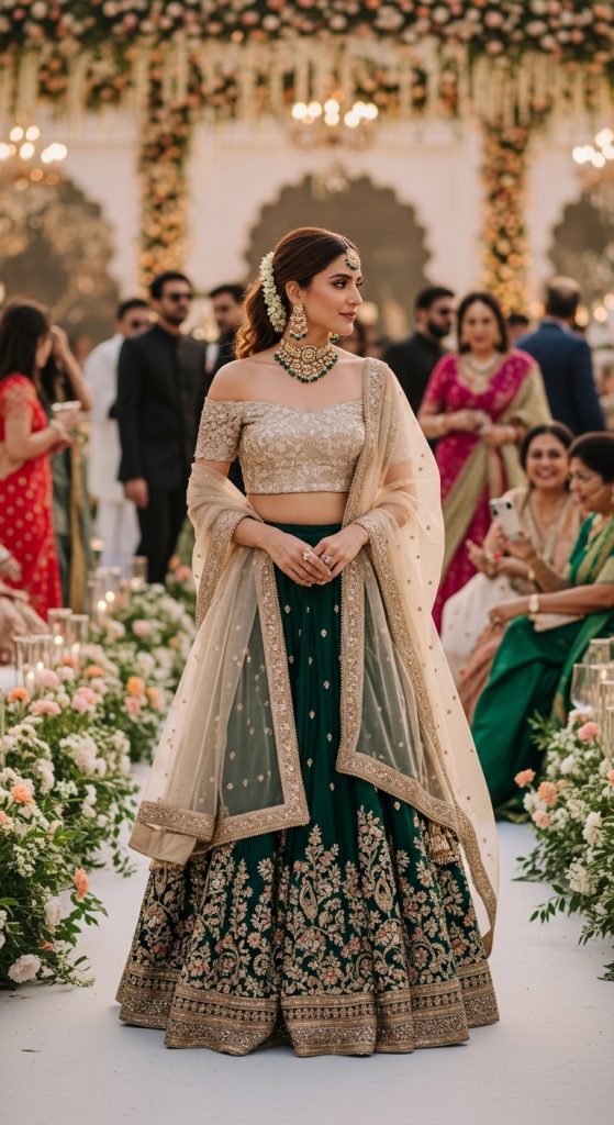 A lehenga is perfect for grand or cultural weddings. Opt for lighter designs if you’re a guest to avoid overshadowing the bride. Soft embroidery, pastel tones, or minimal sequins can help you achieve a sophisticated yet festive look.