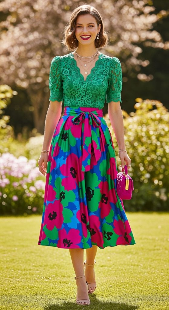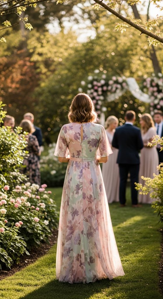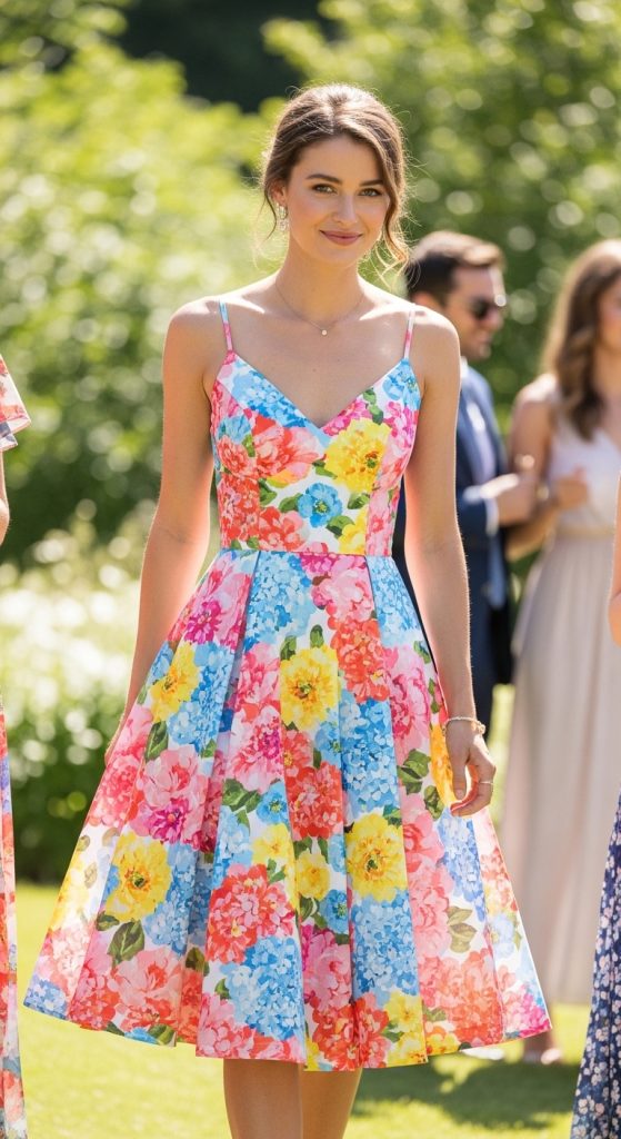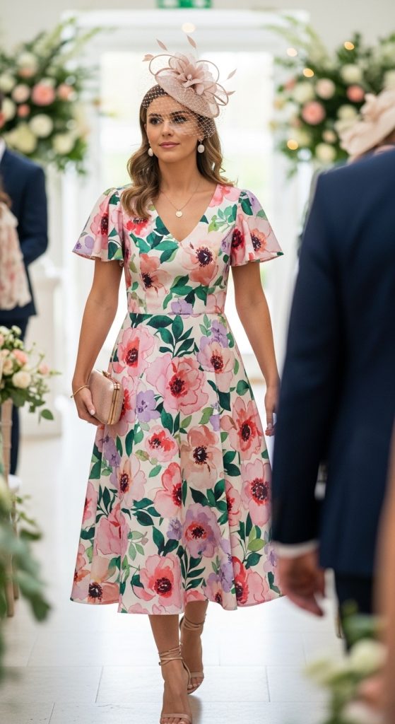 Floral prints are ideal for spring and summer weddings. They add freshness and vibrancy to your look. Choose light fabrics like cotton or silk blends and pair with nude heels or wedges for a breezy, elegant vibe.