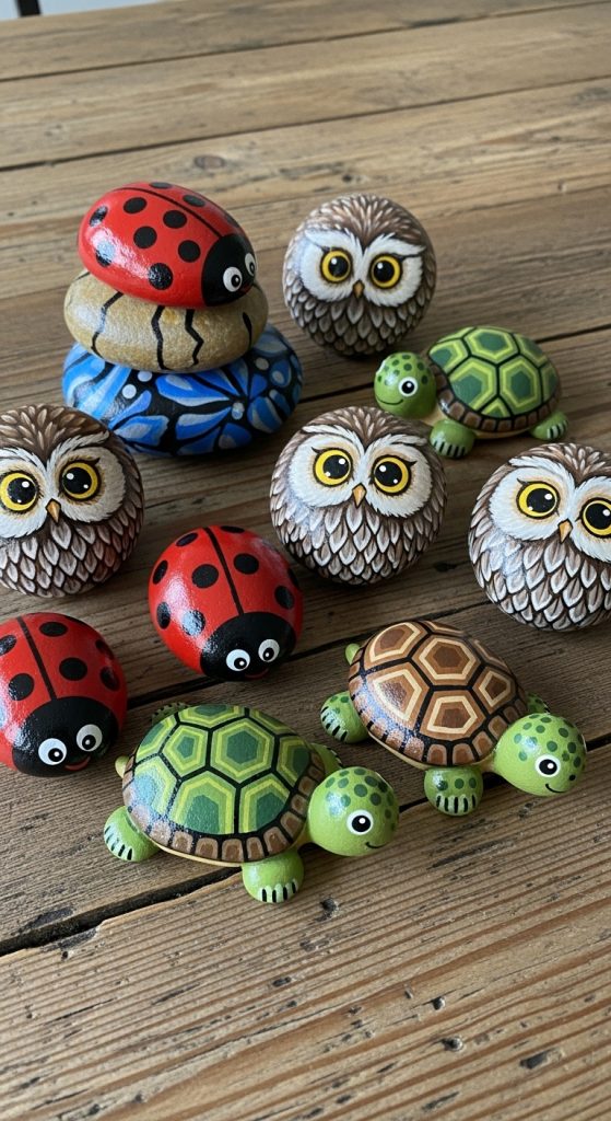 Transform your rocks into adorable animals like ladybugs, owls, cats, or turtles. This idea is especially great for kids as it combines creativity with fun learning. Use simple shapes and vibrant colors to bring your animal designs to life. Adding small details like eyes and patterns makes them even more charming.