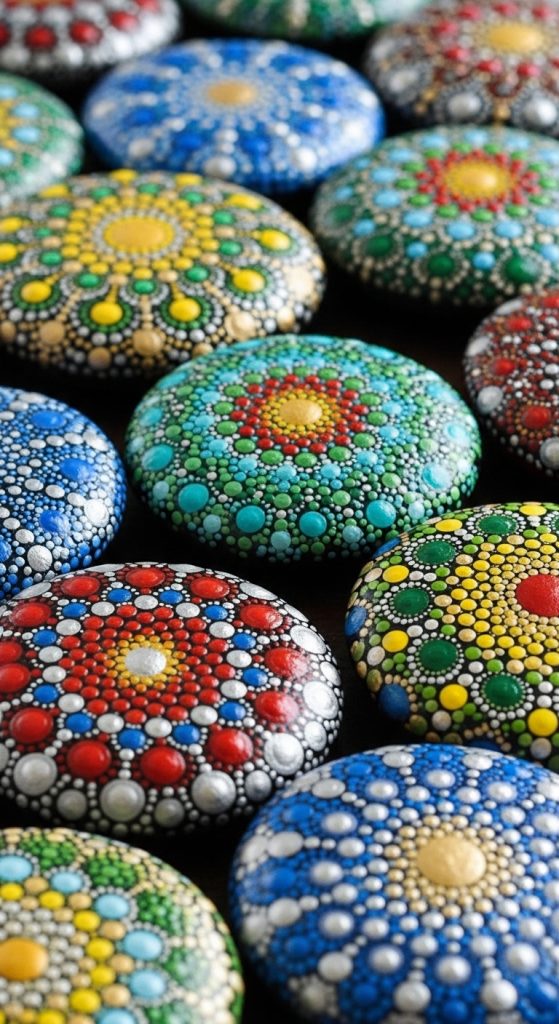 Mandala designs are perfect for those who enjoy detailed and relaxing art. These circular patterns look stunning on smooth rocks. Use dotting tools or small brushes to create symmetrical patterns with different colors. Mandala rocks are not only beautiful but also therapeutic to create.