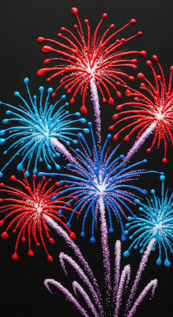 This is a fantastic sensory craft for kids. The salt creates a 3D texture that mimics the “sparkle” and explosion of a real firework in the night sky.