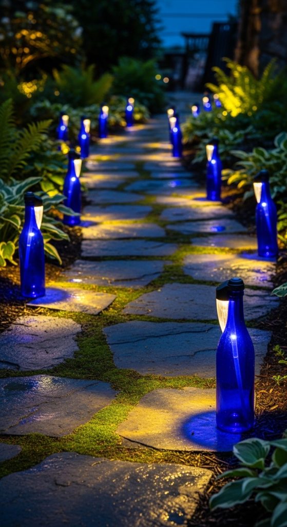 Don’t toss those beautiful blue or green wine bottles! By inserting a thin solar light into the neck, you create a sleek, modern torch that looks like expensive boutique decor.