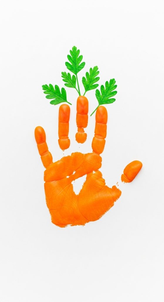 - The orange palm becomes the carrot, and the green fingers become the leafy tops!