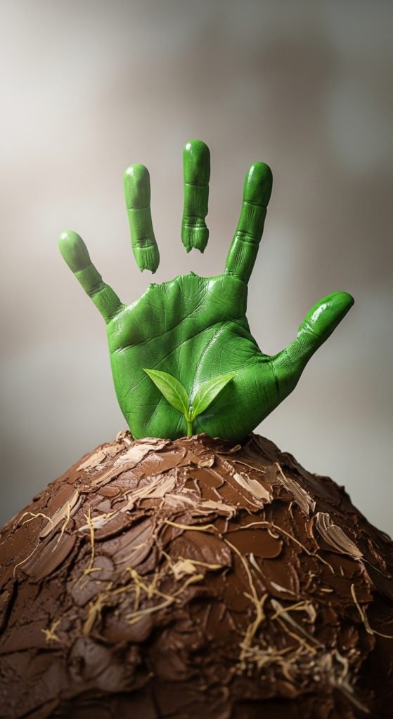 - Connect the hand to the dirt with a green stem. The fingers become the leaves of the new sprout!