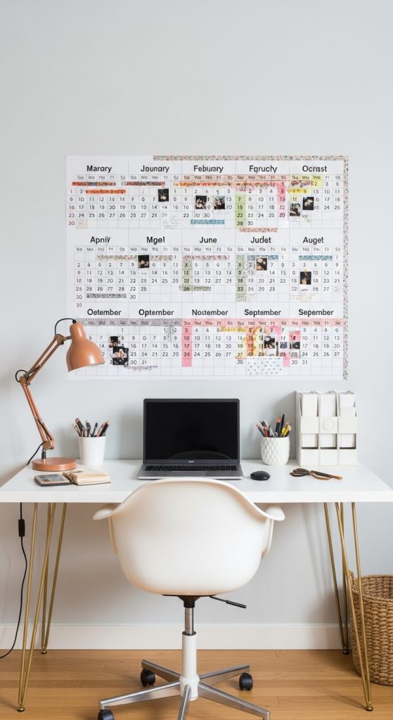 Turn your wall into a functional calendar using washi tape. Create boxes for each day of the month and label them accordingly. You can use different colors to highlight important dates or events. This is both practical and visually appealing.