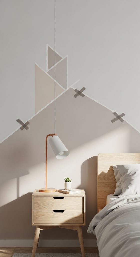 Create a modern and stylish look by designing geometric patterns on your wall. Use washi tape to form triangles, diamonds, or abstract shapes. You can keep it monochrome for a minimal vibe or mix different colors for a bold statement. This idea works especially well for accent walls and adds a clean, contemporary feel to your room.